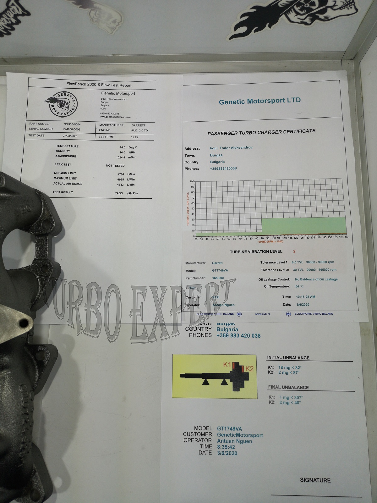 Всеки турбокомпресор е придружен със всички сертификати за преминати изпитания .